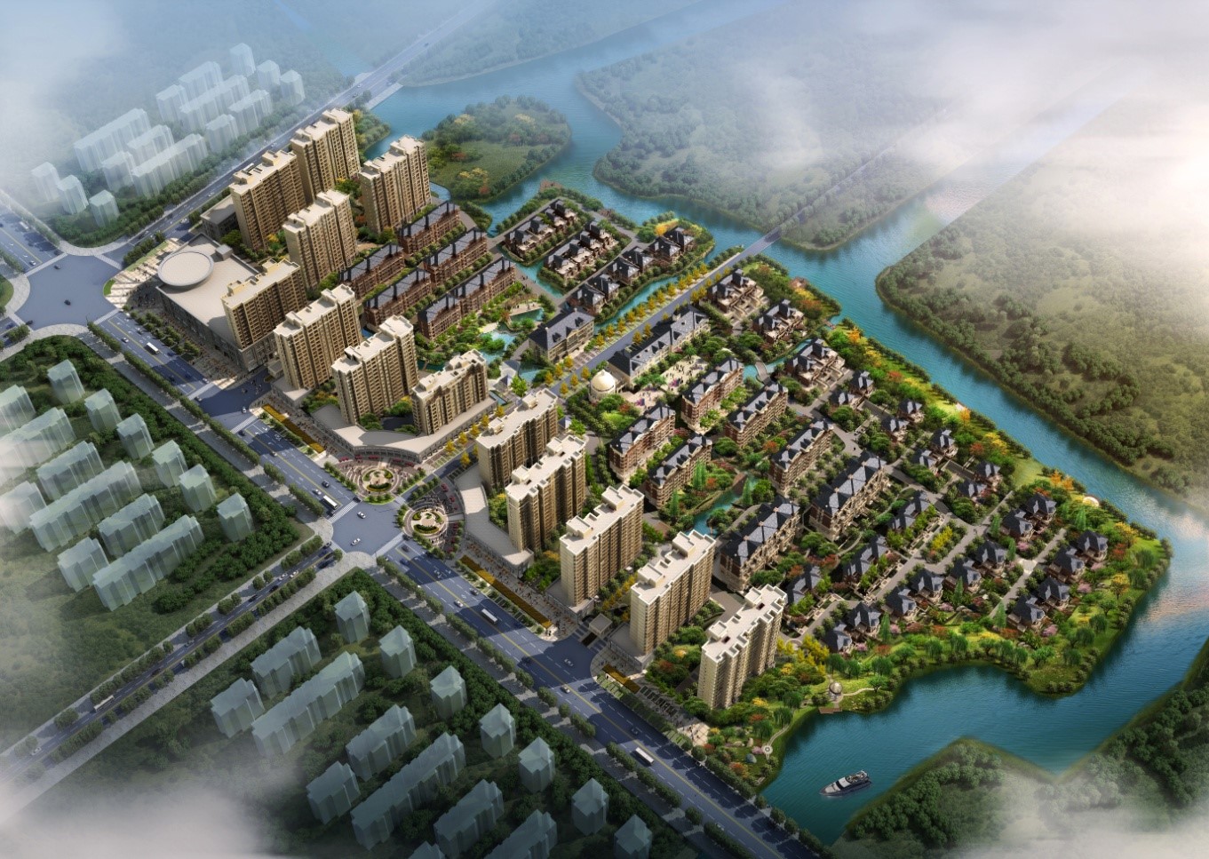 3, the whole water area, realize the organic connection of natural and artificial waterscape landscape through the expansion of natural water, the local area also forms an island waterfront townhouse.